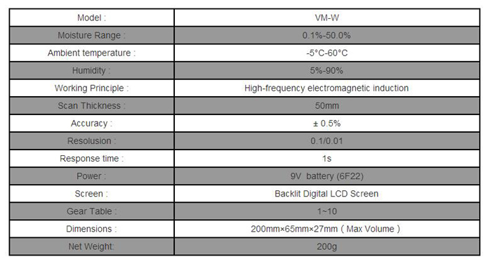 1.VM-W Wood Moisture Meter,adopted the high-frequency principle, LCD back light digital display, the densor and the host all in one.