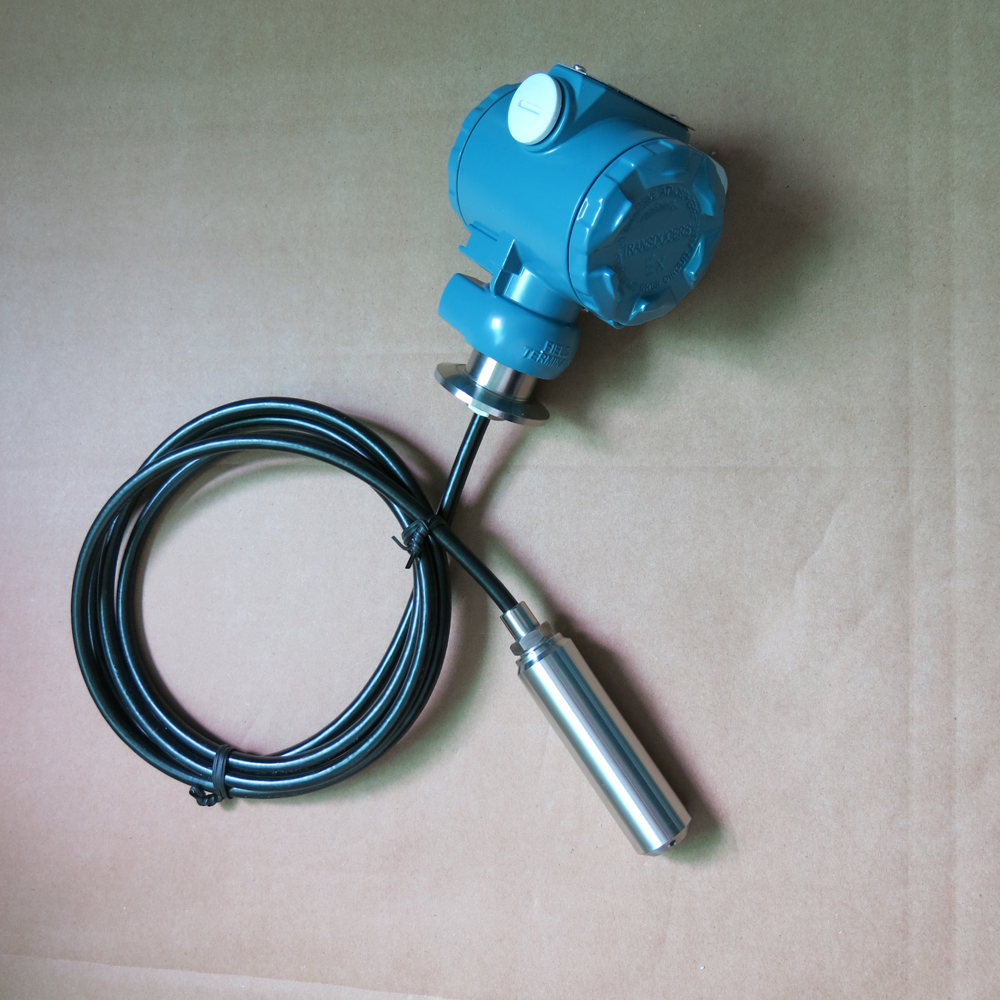 投入式液位計由內置毛細管、防壓縮接頭和探頭的專用導纜組成。探頭是由一個不銹鋼圓筒,底部有一個隔膜,上面蓋有一個帶孔的不銹鋼外殼。液位測量是測量探頭的液體靜壓力與實際大氣壓力差,然后由傳感器(附不銹鋼膜)和差壓電子元件為4 ~ 20mA輸出信號。